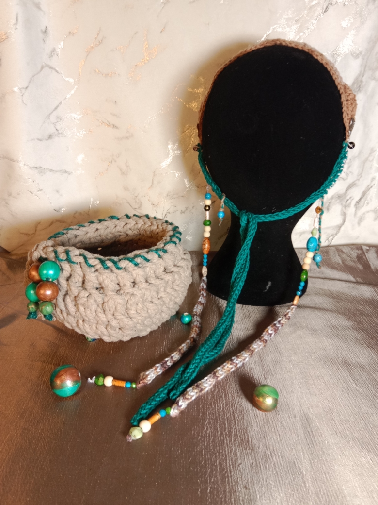 Bandeau crocheté avec un coton Oeko Tex, il est agrémenté de jolies perles acryliques richement colorées. Les cordons d’attache ont été délicatement tissés par mes soins. Les couleurs choisies sont en harmonie. Vous pourrez associé ce bandeau avec par exemple une jolie paire de boucles d’oreilles.