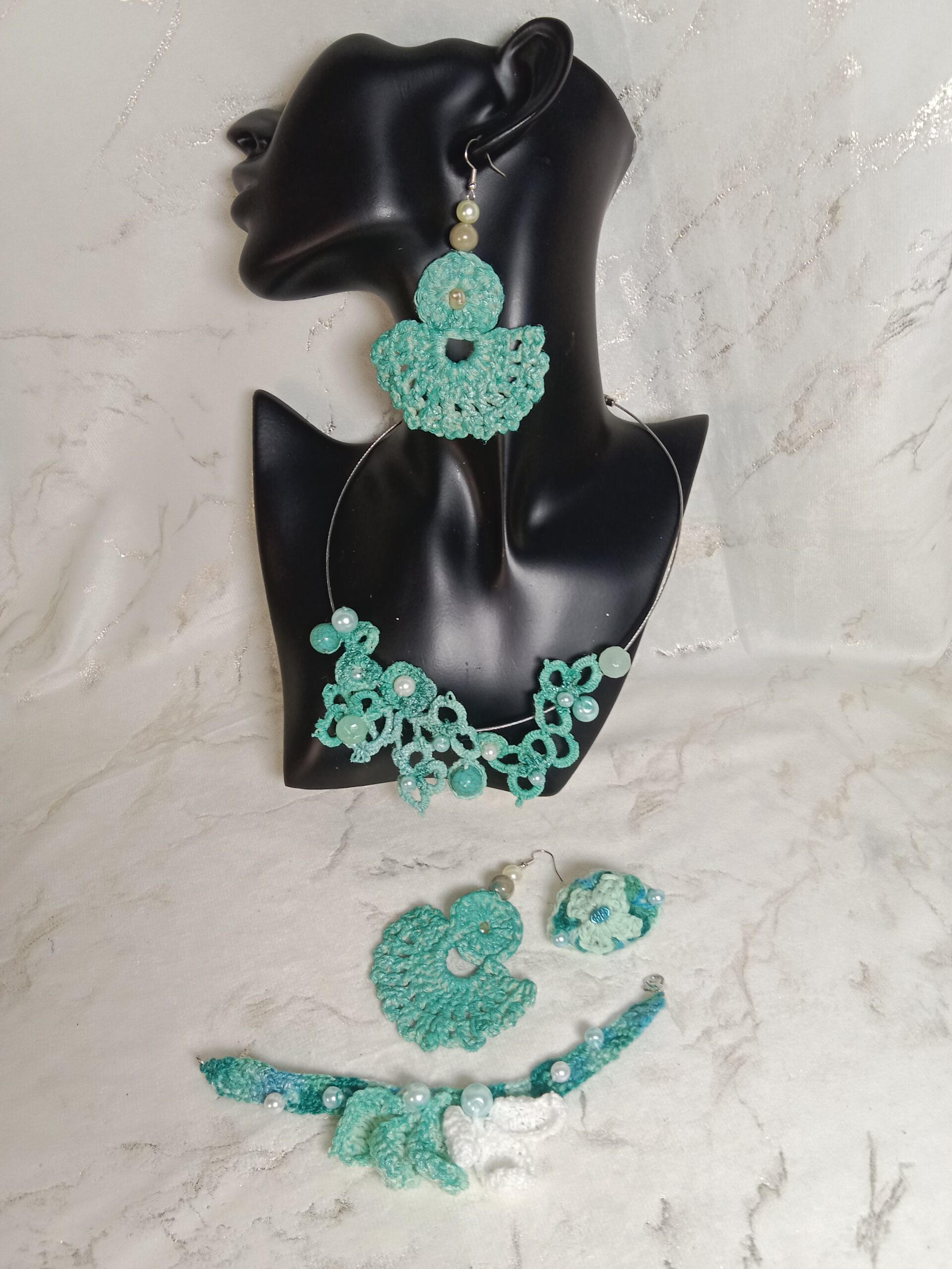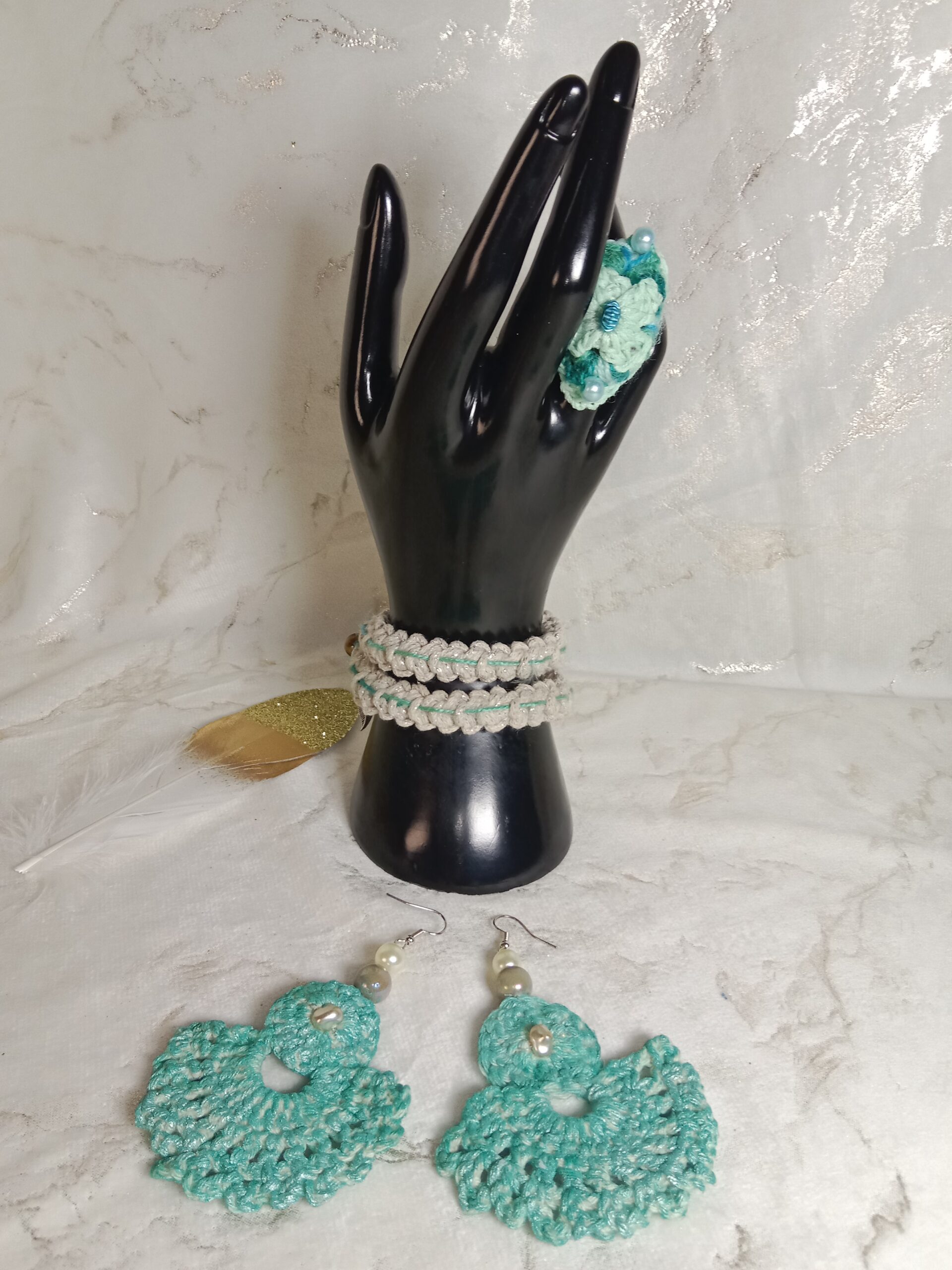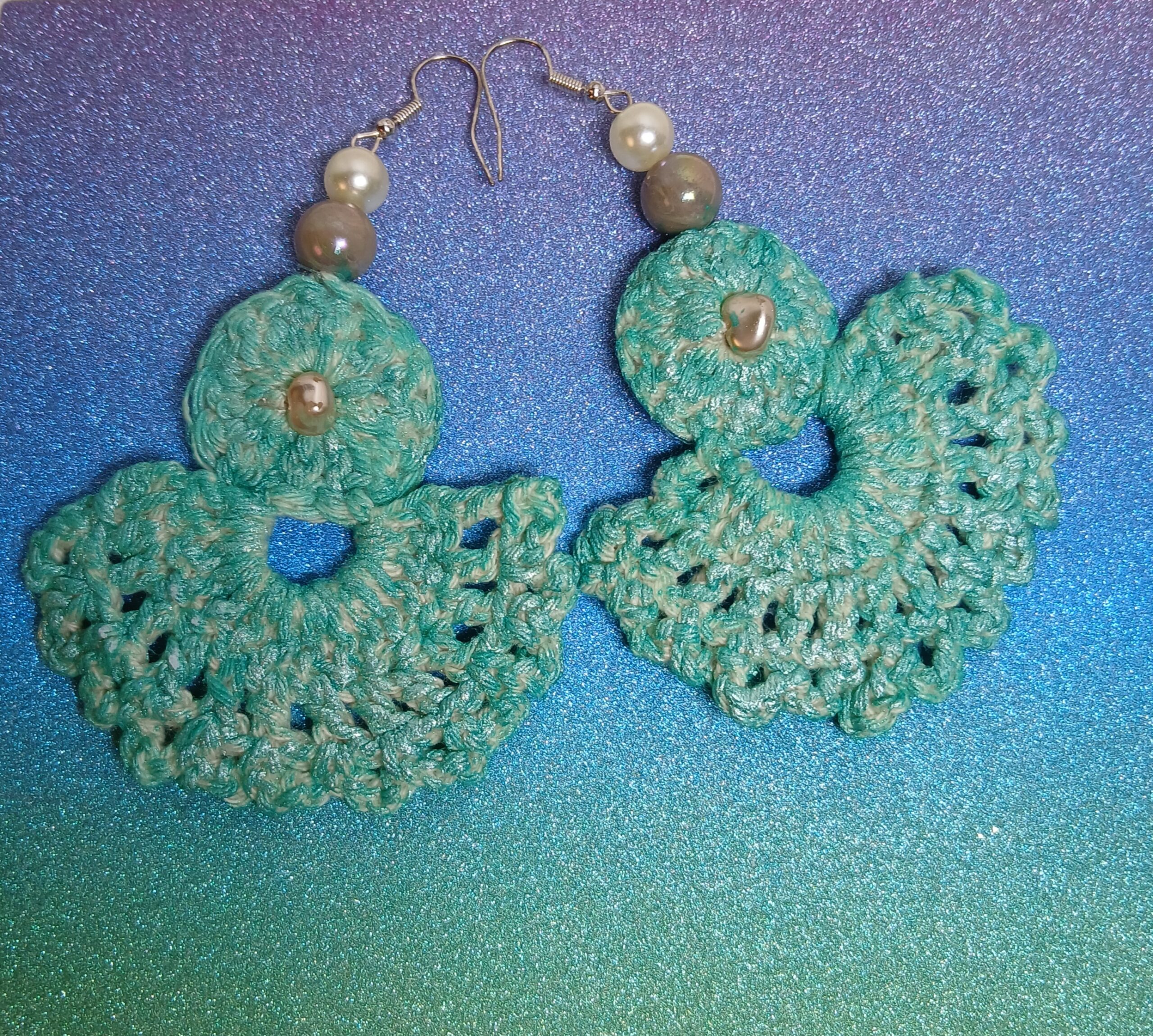 Paire de boucles d’oreilles crochetées en coton, fil mercerisé fin, satinées et brillantes. Elles sont accompagnées de jolies perles en verre. Accroches en acier inoxydable argentées. Très légères. Vous pourrez créer un ensemble harmonieux avec une bague, bracelet et collier aux mêmes teintes. Le tout est assemblé dans mon atelier  avec une attention particulière portée à l’harmonie des couleurs et aux détails. Un bijou qui allie vitalité, intuition et élégance lumineuse, pensé pour accompagner votre quotidien. Conseils, évitez le contact avec l’ eau. Composez votre coffret cadeaux avec ses jolies boucles crochetées avec passion.