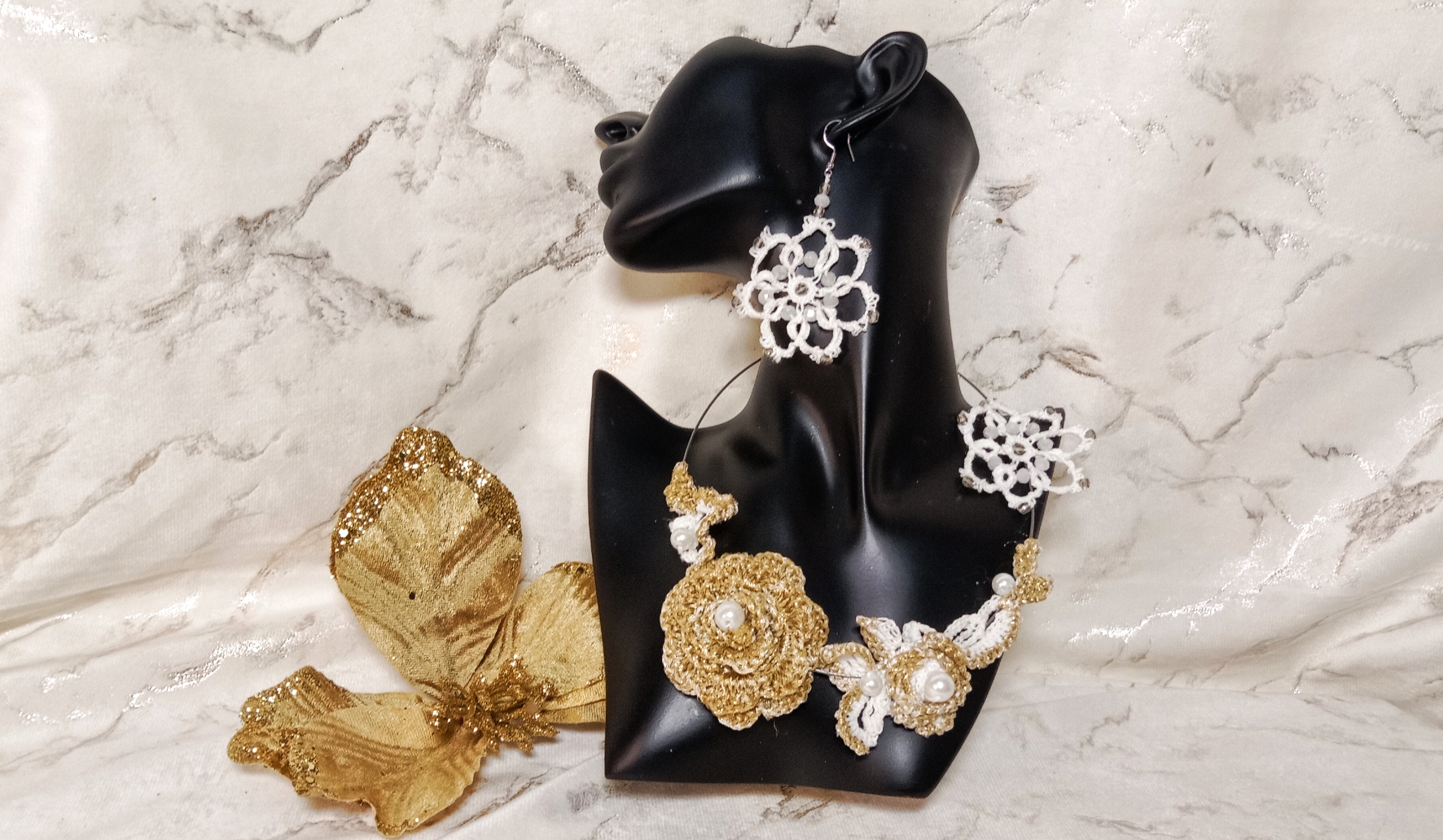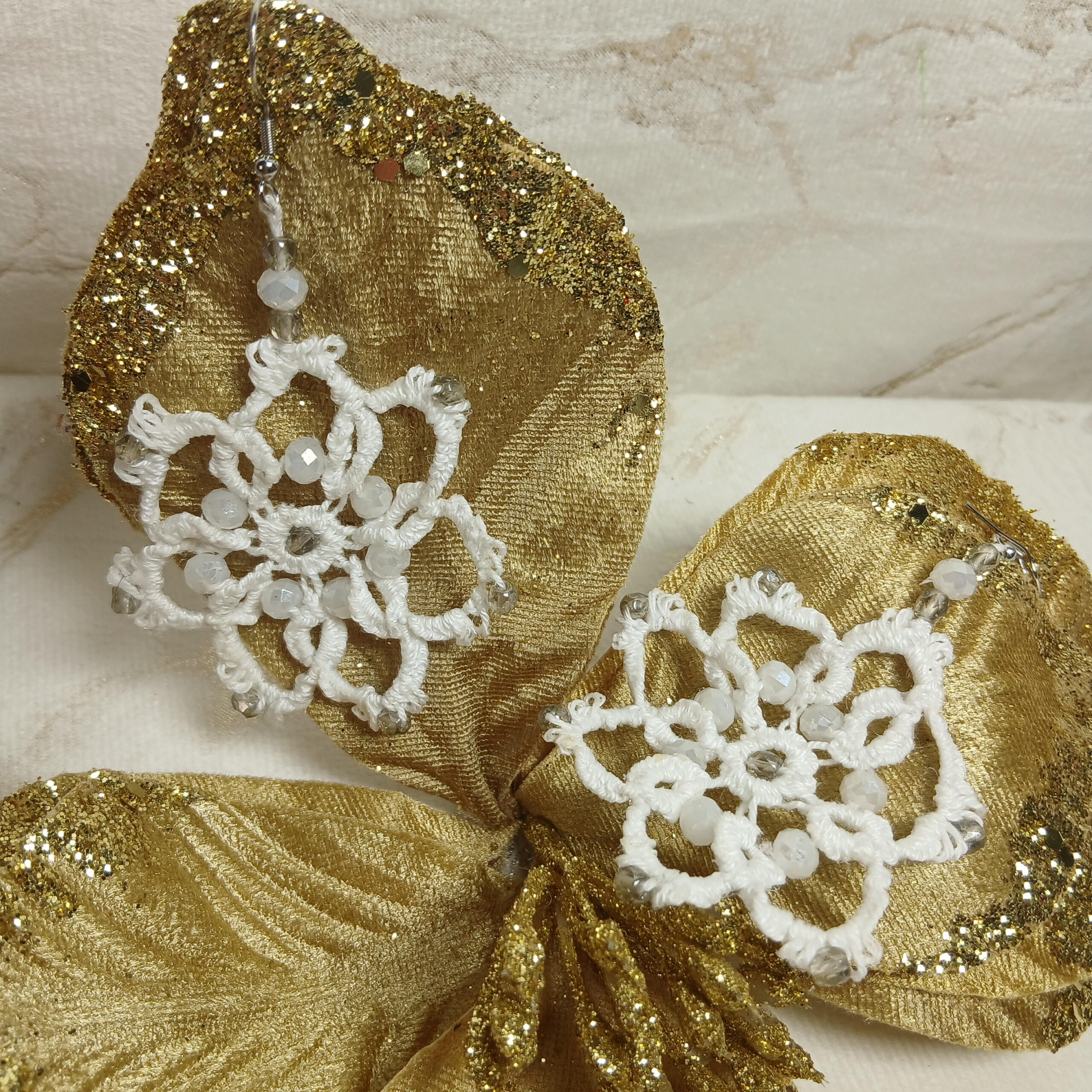 Très jolies boucles d’oreilles , travaillées à la frivolité( technique de travail à l’aiguille).