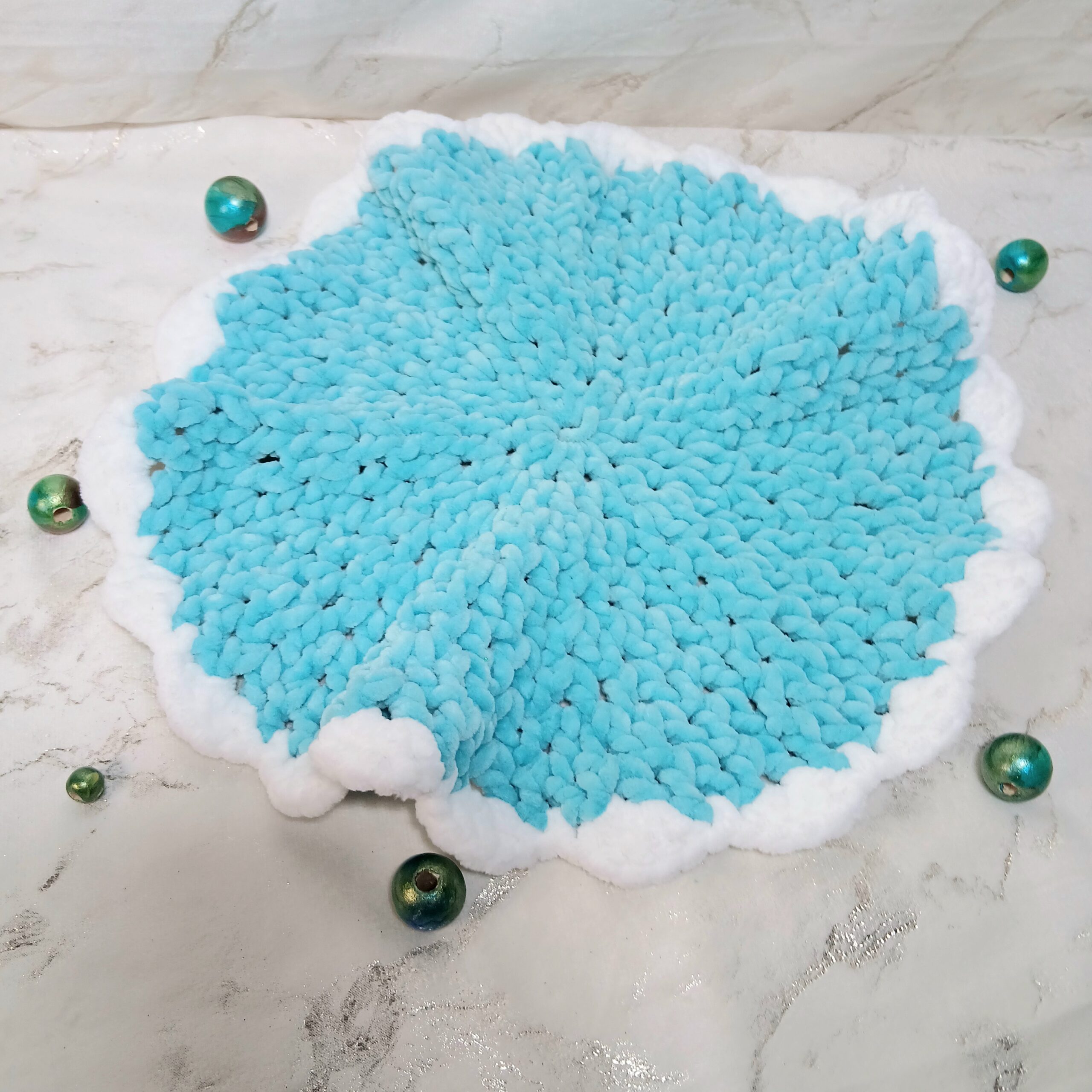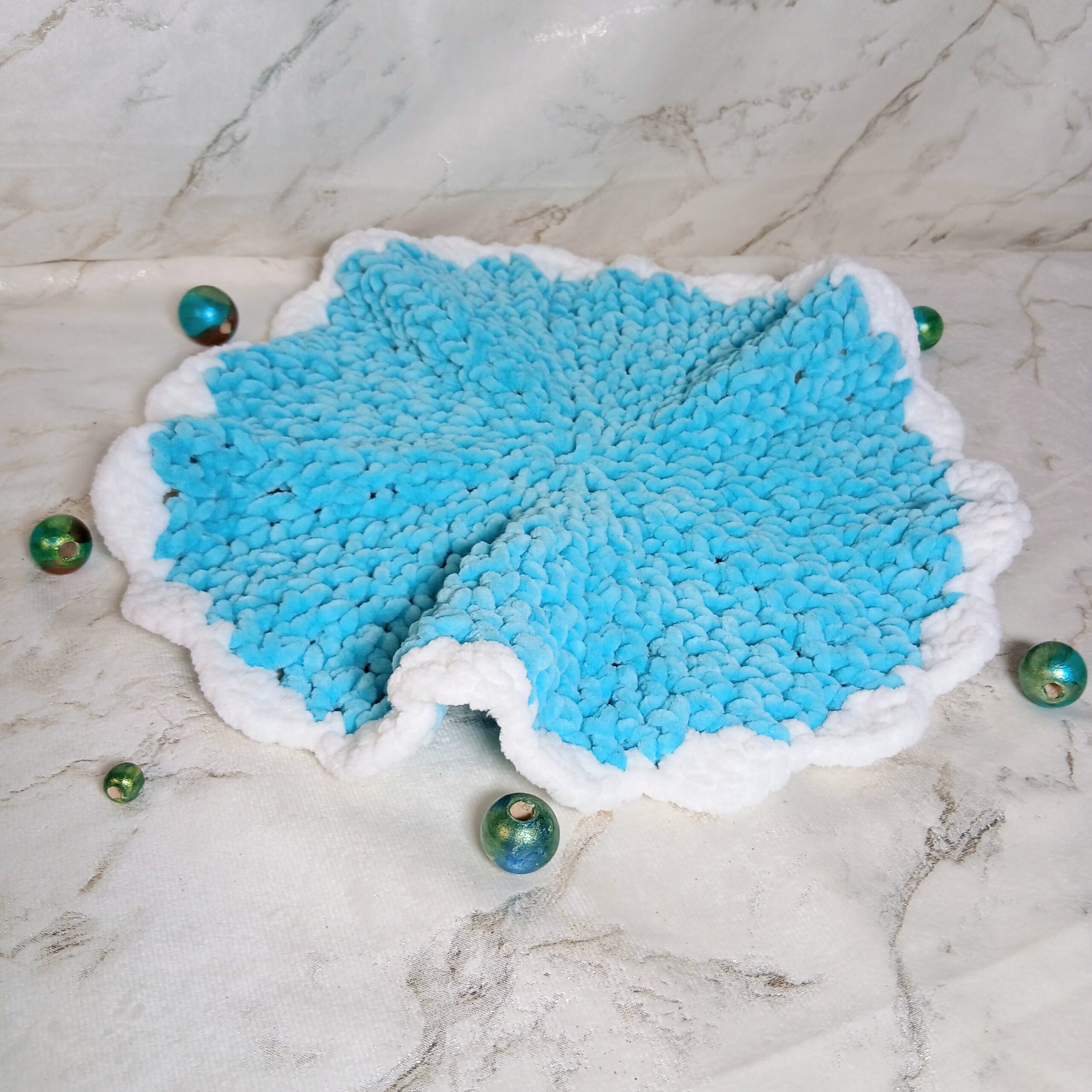Napperon bleu ciel et blanc, crocheter avec passion. Très doux.