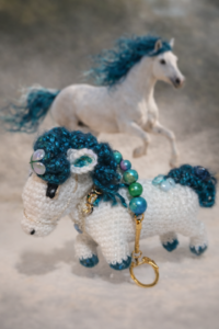 Un très joli présent, petit cheval travaillé au crochet avec différents fils , perles le rendant magique. Les couleurs sont soigneusement choisies pour en faire une création unique. Des petites perles en bois sont peintes à la main avec des peintures scintillantes et respectueuses de l’environnement, vous pouvez également vous faire plaisir en en commandant sur mon site.