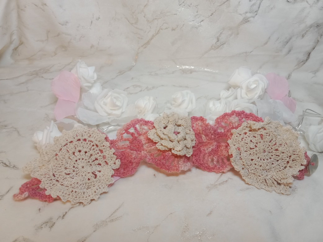 Tour de cou crocheté finement thème floral en dentelle. Ce tour de cou raffiné pourra vous sublimer au quotidien oiu lors d’un mariage
