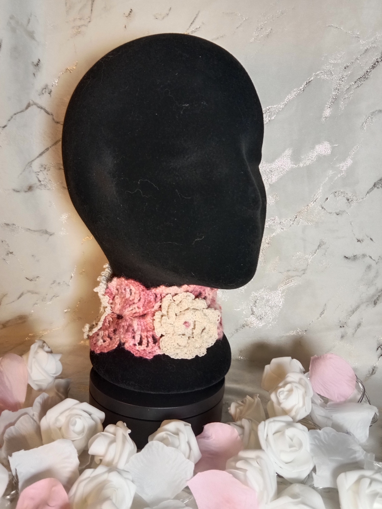 Tour de cou au crochet floral et dentelle